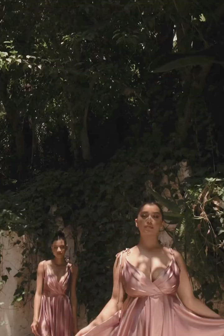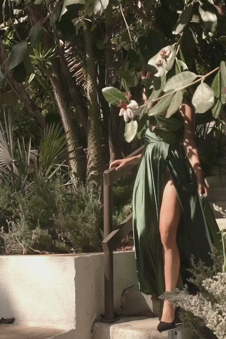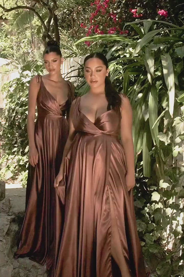 - V-Neck Satin Gown with A-line Skirt