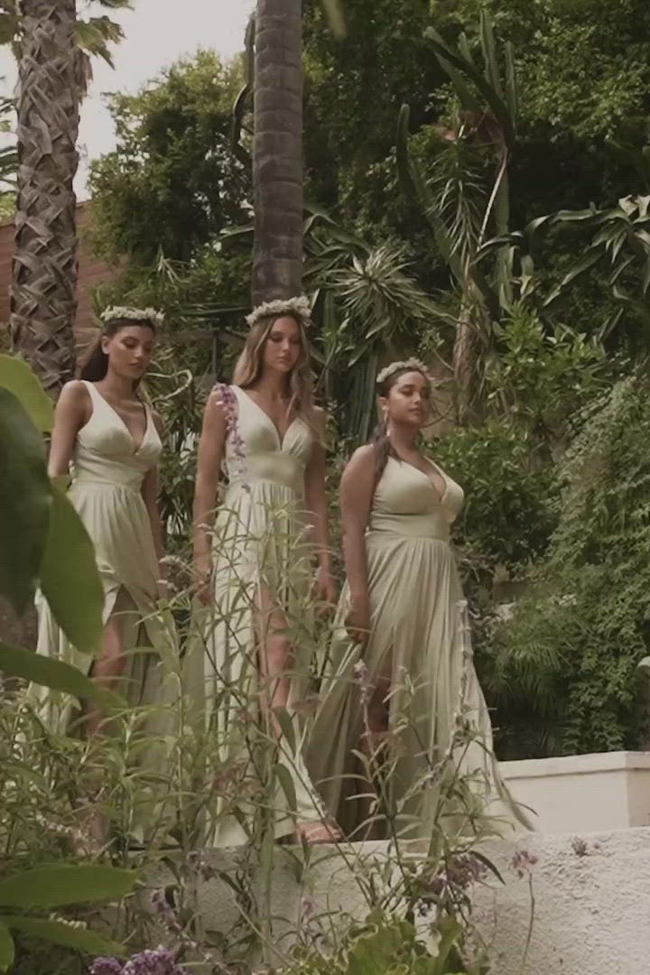 Satin Flowy A-Line Dress With Leg Slit, Open Back And V-Neckline by Cinderella Divine -7469